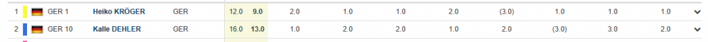 Nach den ersten Wettfahrten lagen Kalle Dehler und Heiko Kröger teilweise nur einen Punkt entfernt. Sie wechselten sich fleißig in der Führung ab – Ein Kopf an Kopf rennen!!